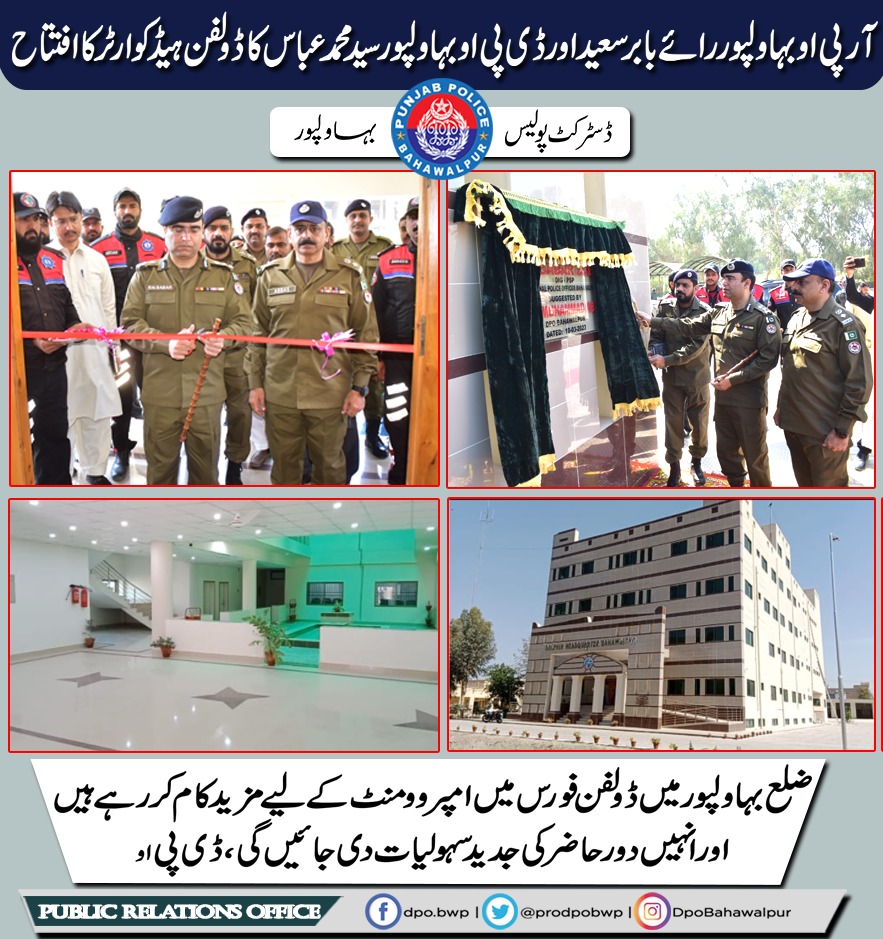 Regional Police Officer Rai Babar Saeed and DPO Bahawalpur Syed Mohammad Abbas inaugurated Dolphin Headquarters at District Police Lines Bahawalpur.