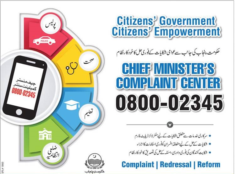 حکومت پنجاب کی جانب سے اعوامی شکایات کے فوری حل کا