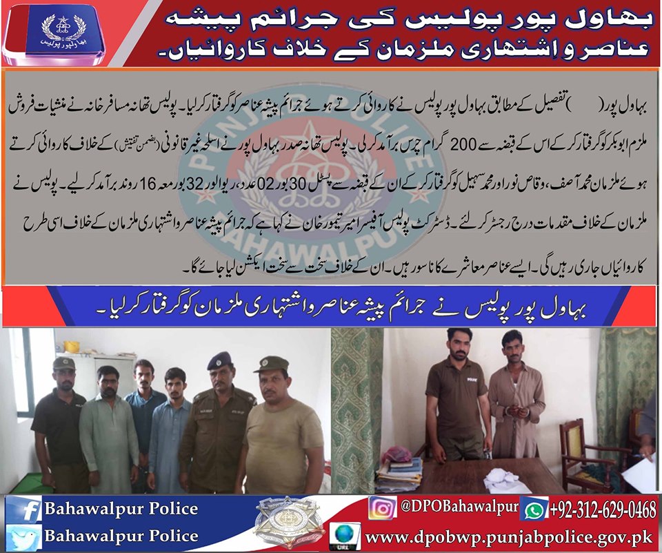بہاولپور پولیس کا جرائم پیشہ عناصر و اشتہاری ملزمان کے خلاف کاروائیاں جاری