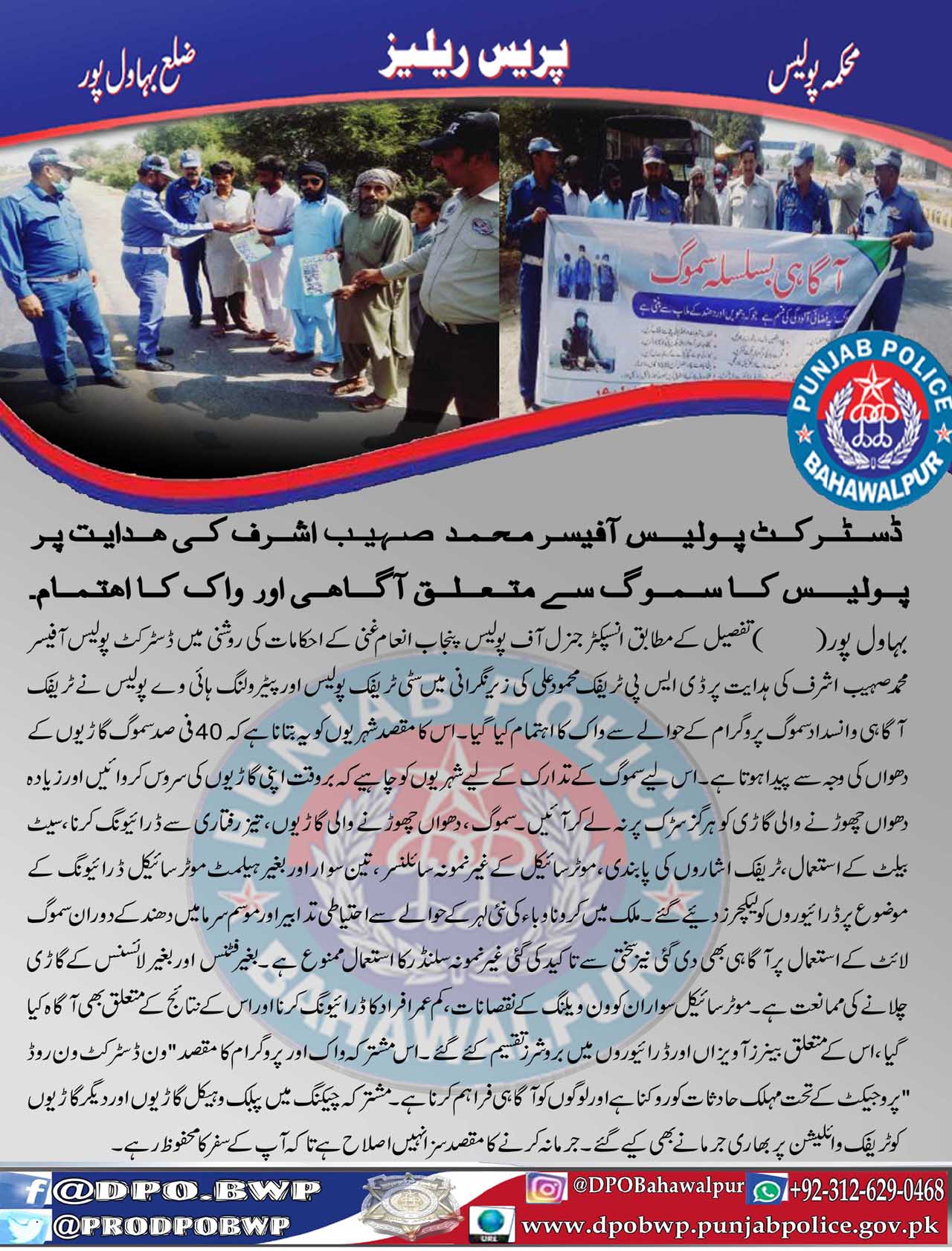 ڈسٹرکٹ پولیس آفیسر محمد صہیب اشرف کی ہدایت پر پولیس کا سموگ سے متعلق آگاہی اور واک کا اہتمام۔ ۔ ۔