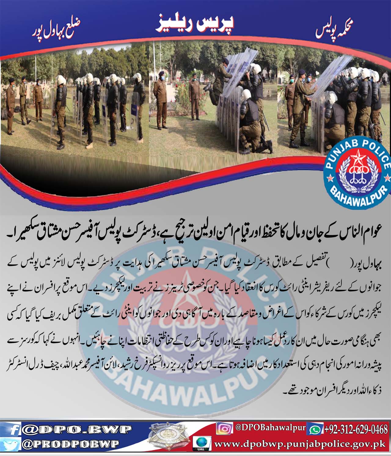 عوام الناس کےجان و مال کا تحفظ اور قیام امن اولین ترجیح ہے ، ڈسٹرکٹ پولیس آفیسر حسن مشتاق سکھیرا۔ ۔