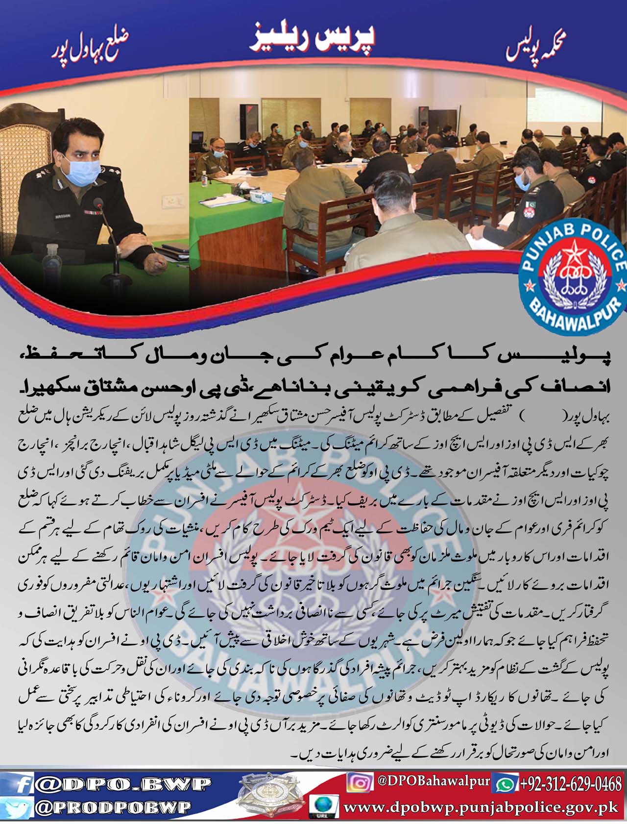 پولیس کا کام عوام کی جان و مال کا تحفظ ، انصاف کی فراہمی کو یقینی بنانا ہے ، ڈی پی او حسن مشتاق سکھیرا۔