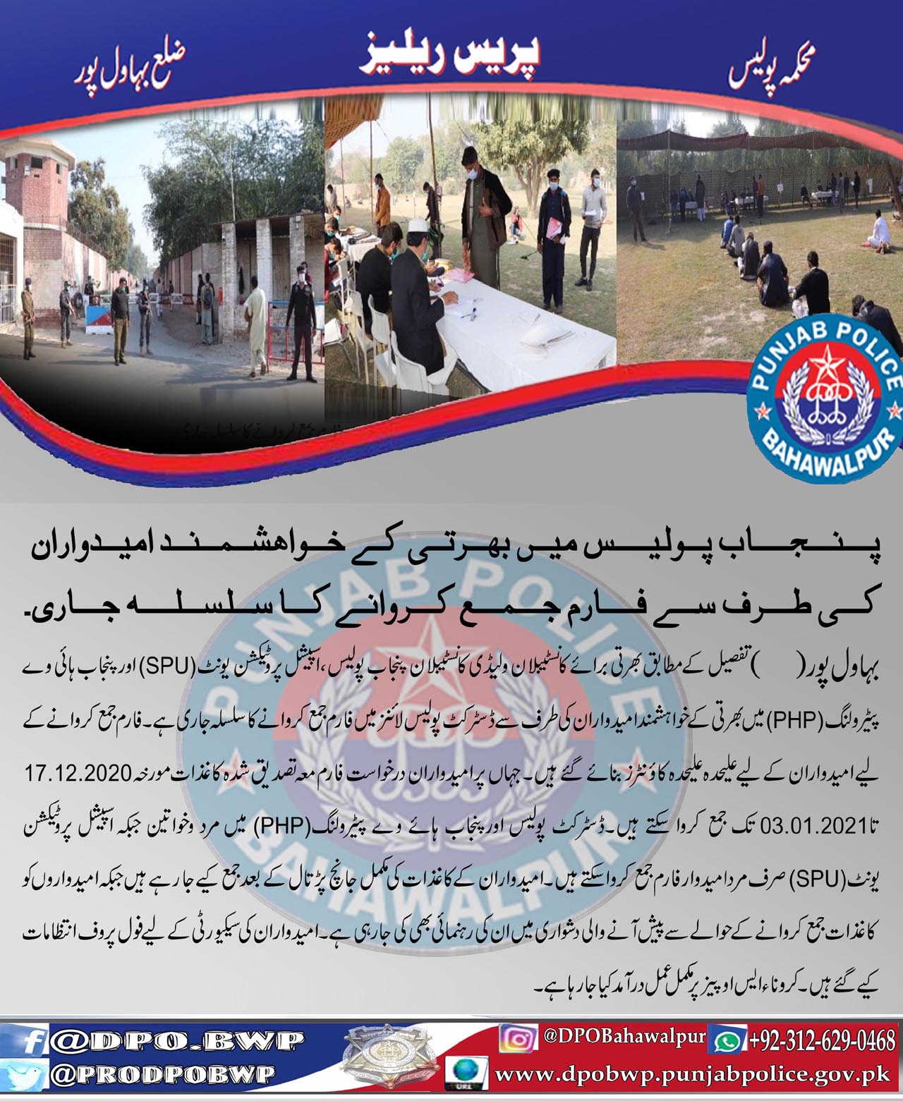 پنجاب پولیس میں بھرتی کے خواہشمند امیدواران کی طرف سے فارم جمع کروانے کا سلسلہ جاری