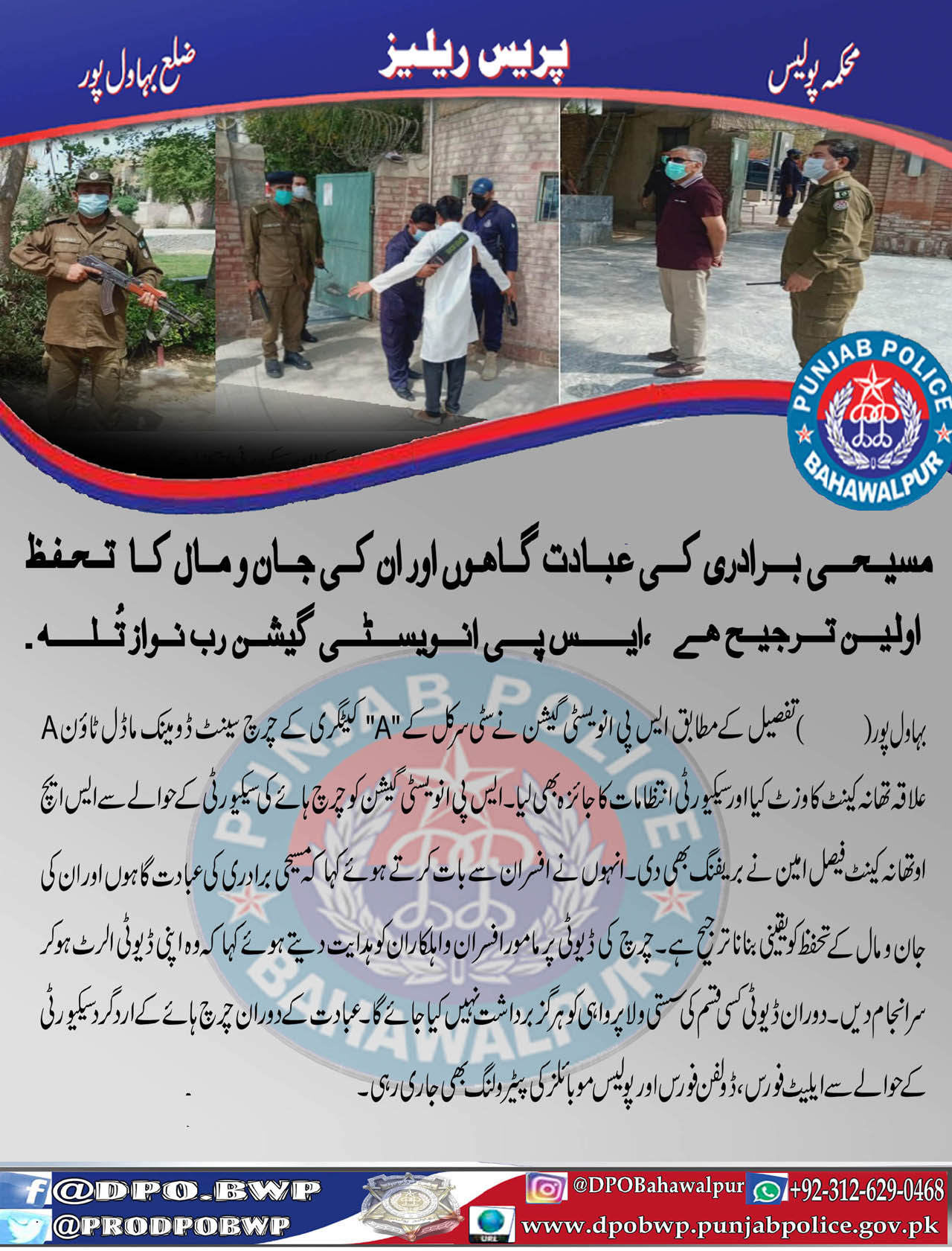 مسیحی برادری کی عبادت گاہوں اور ان کی جان و مال کا تحفظ اولین ترجیح ہے ، ایس پی انویسٹی گیشن رب نواز تلہ۔