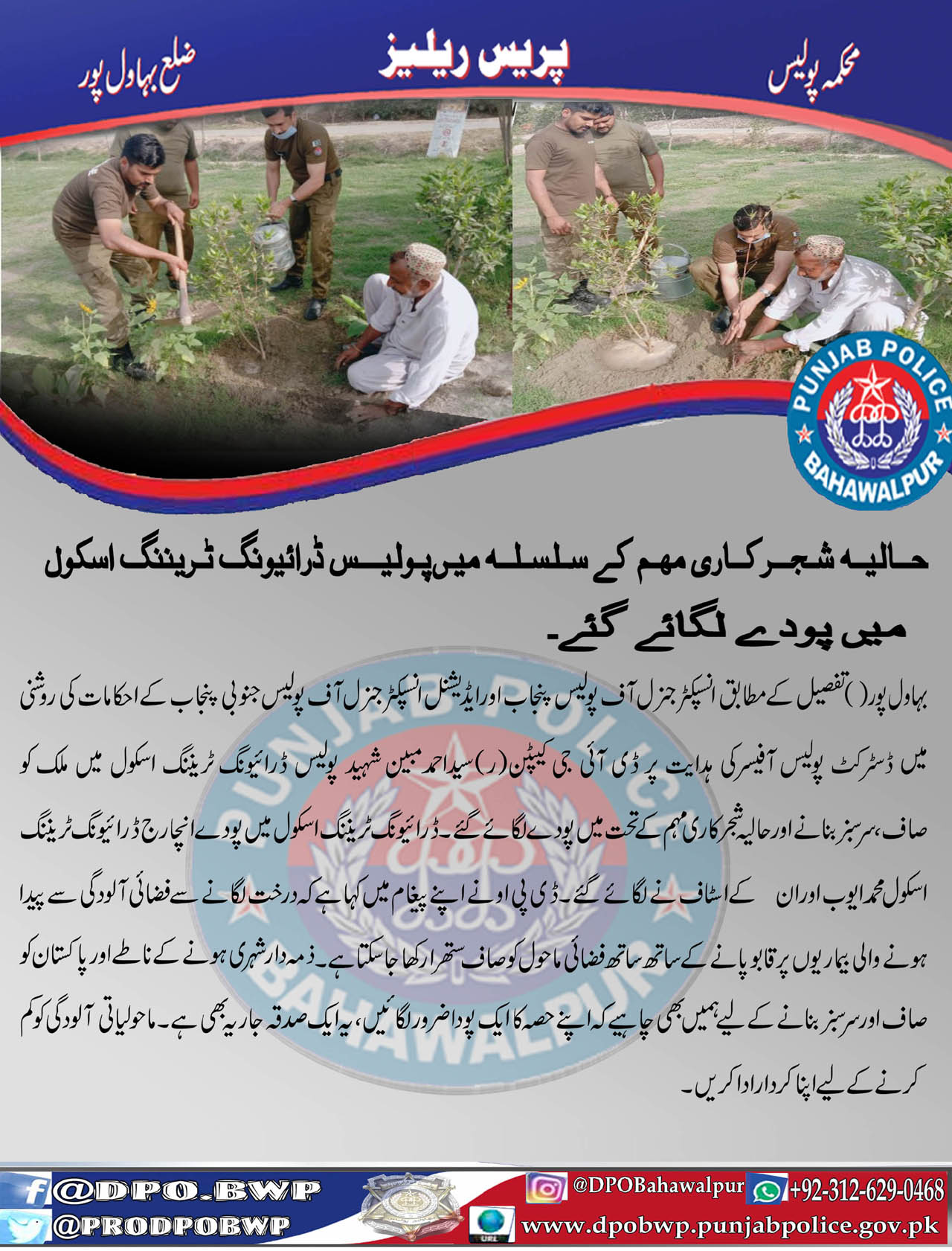 حالیہ شجر کاری مہم کے سلسلہ میں پولیس ڈرائیونگ ٹریننگ اسکول میں پودے لگائے گئے۔