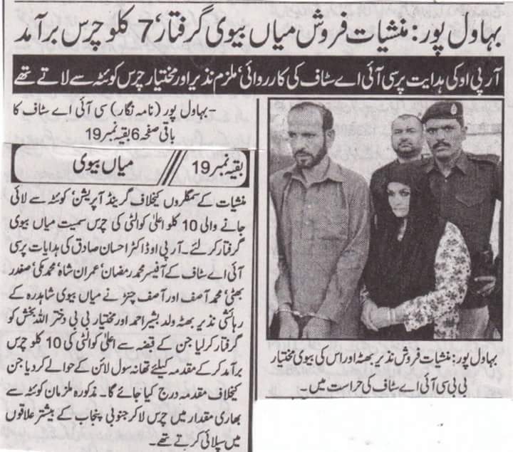 منشیات فروش میاں بیوی گرفتار 7کلو چرس برآمد