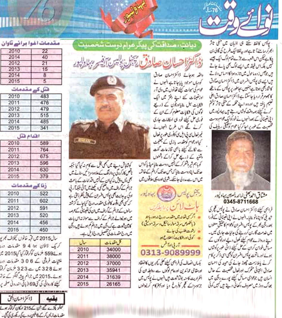 دیانت، صداقت کے پیکر اعوام دوست شخصیت ڈاکٹر احسان صادق ریجنل پولیس آفیسر بھاولپور