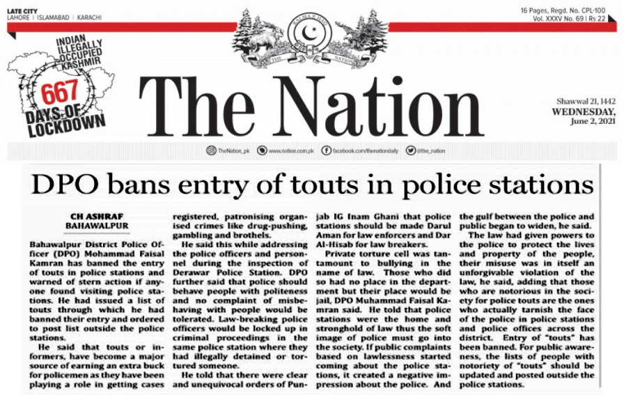 Ref; https://nation.com.pk/02-Jun-2021/dpo-bans-entry-of-touts-in-police-sta…