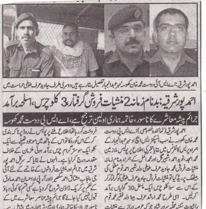 بدنام زمانہ دو منشیات فروش گرفتار تین کلو چرس اور اسلحہ برآمد