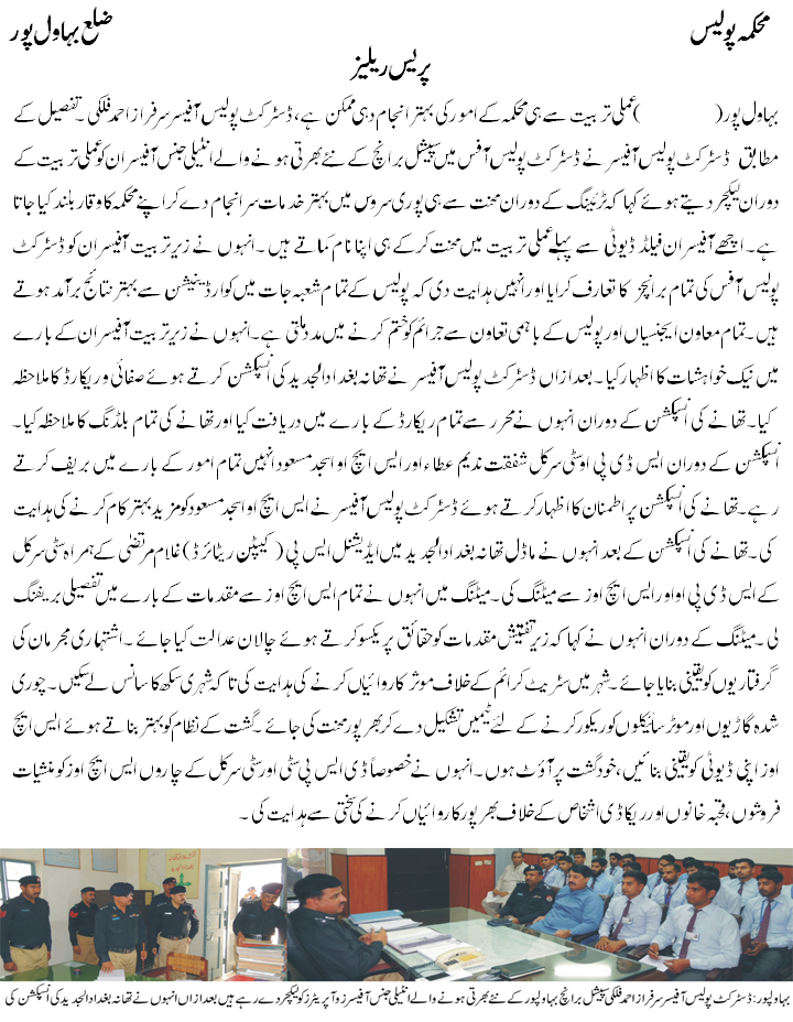 Press Releases پولیس آفیسر بھاولپور سرفراز احمد نے اسپشل برانچ بھاولپور میں نئے بھرتی ہونے والے انٹیلی جینس آفیسرز و آپریٹرز کو لیکچر دیا