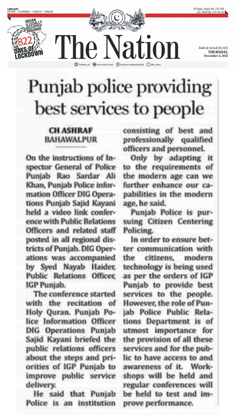 In order to ensure better communication with the citizens, modern technology is being used as per the orders of IGP Punjab to provide best services to the people.  However, the role of Punjab Police Public Relations Department is of utmost importance for the provision of all these services and for the public to have access to and awareness of it.  Workshops will be held and regular conferences will be held to test and improve performance.