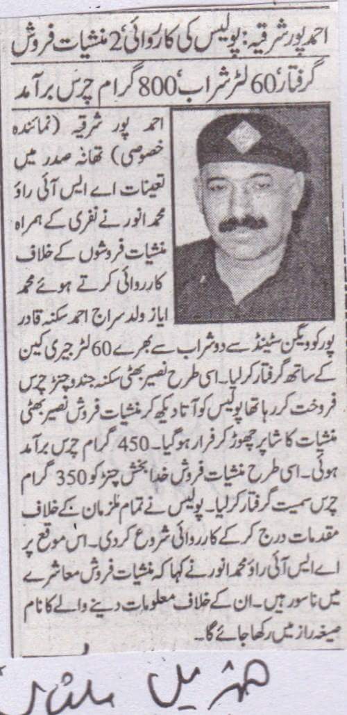 احمدپور شرقیہ پولیس کی کارروائی 2منشیات فروش گرفتار
