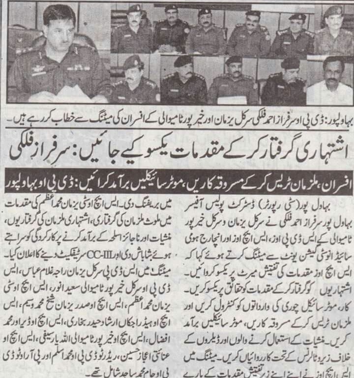 اشتہاری گرفتار کر کے مقدمات یکسو کیے جائیں :- ڈی پی او سرفراز احمد فلکی