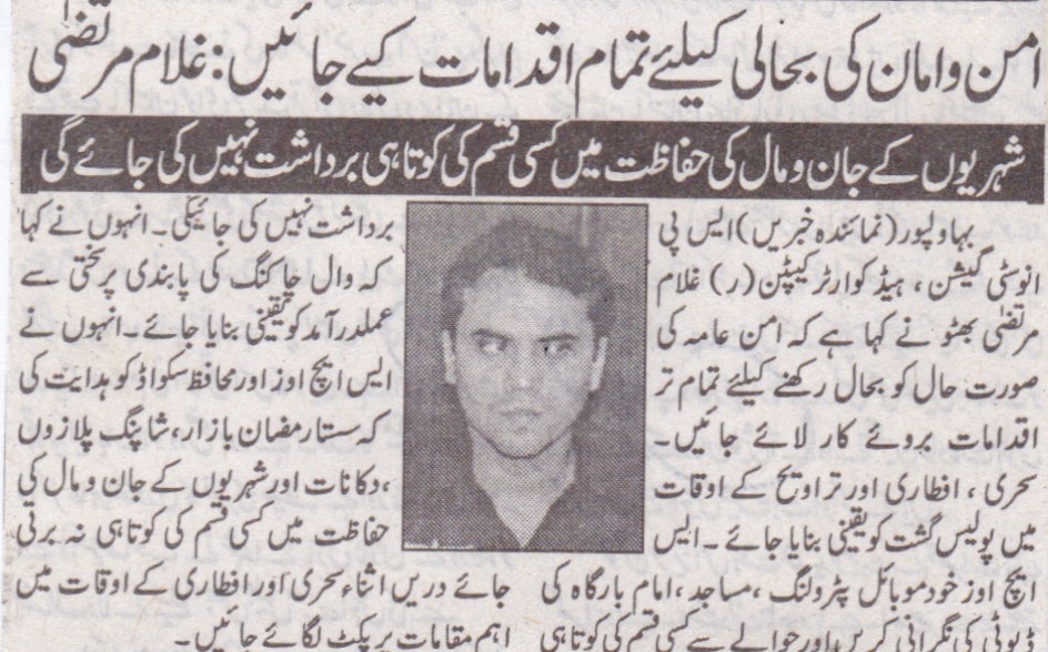 امن وامان کی بحالی کے لیے تمام اقدامات کیے جائیں غلام مرتضی بھٹو