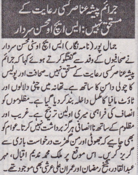جرائم پیشہ عناصر کسی رعایت کے مستحق نہیں ۔SHO محسن سردار