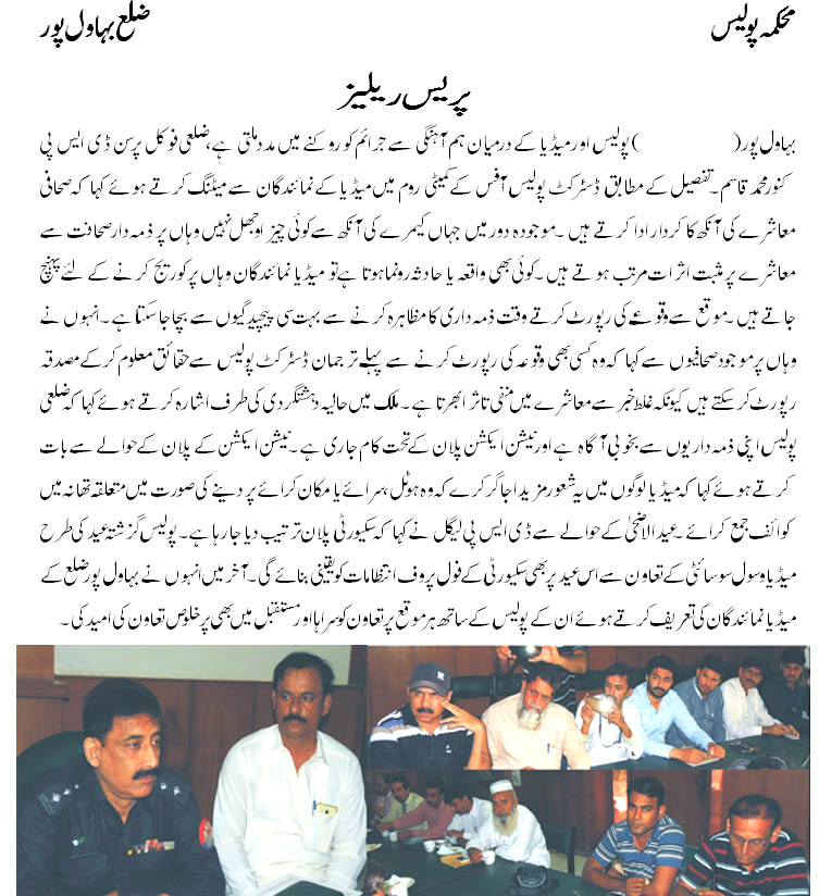 پولیس اور میڈیا کے درمیان ہم آہنگی سے جرائم کو روکنے میں مدد ملتی ہے ۔۔ضلعی فوکل ڈی ایس پی کنور محمد قاسم