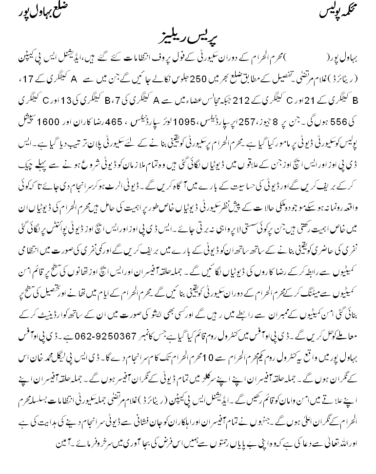 ۔محرم الحرام کےدوران سکیورٹی کے فول پروف انتظامات کیے گئے ہیں ایڈیشنل ایس پی( کیپٹن ریٹائرڈ )غلام مرتضیٰ
