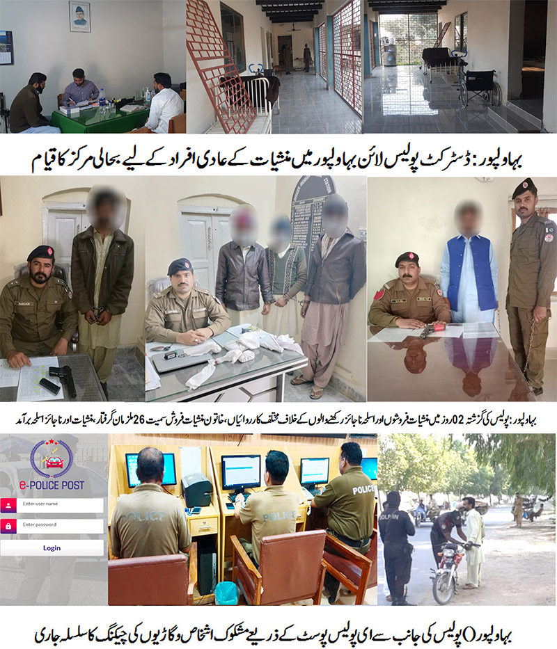 تفصیل کے مطابق ڈی پی او بہاولپور عبادت نثارکی ہدایت پر جرائم پیشہ افراد کی سرکوبی کا سلسلہ جاری ہے ۔ماہ دسمبر کے پہلے 15روز میں بہاولپور پولیس نے سمارٹ پولیسنگ کے ذریعے چیکنگ کا سلسلہ کا جاری رکھا ہوا ہے ، جدید ٹیکنالوجی کو بروئے کار لاتے ہوئے مشکوک افراد ، مشکوک گاڑیوں کی چیک جاری ہے ، دوران چیکنگ مجرمان اشتہاری کے خلاف کارروائیاں کرتے ہوئے30مجرمان اشتہاری اور عدالتی مفرروان جو دیگر صوبہ جات کو مطلوب تھے کو گرفتارکرلیا۔ جبکہ مشکوک گاڑیوں کو چیکنگ کے دوران 40 مطلوب گاڑیاں اور موٹرسائیکل کا سراغ لگایا گیا ۔اس موقع پر ڈسٹرکٹ پولیس آفیسرعبادت نثار نے پولیس افسران کو ہدایات جاری کیں کہ روزانہ کی بنیاد پر ایسی کارروائیوں کو مزید تیز کیا جائے تمام ایس ایچ اور کو اپنی کارکردگی کو بہتر سے بہتر بنانے پر زور دیا۔ کرائم کی شرح پر ہر صورت قابو پانے اور ملزمان کو ٹریس کرنے اور ان کو کیفر کردار تک پہنچانے کی ہدایت کی ۔ تاکہ علاقہ میں امن و امان کی فضا برقرار رہے۔ پرانے مجرمان اشتہاریوں کی گرفتاری کے لیے تھانہ کی سطح پر ٹیمیں تشکیل دے کر ان مجرمان کی گرفتاری کو یقینی بنایا جائے۔ علاقے کو منشیات سے پاک کرنے میں اپنا کردار ادا کریں اور منشیات فروشوں کی گرفتاری کو یقینی بنائے تاکہ نوجوان نسل محفوظ ہاتھوں میں پروان چڑھے۔ جبکہ تفتیشی اسٹاف کو ملزمان کو بہترین تفتیشی طریقہ کار کے ساتھ سائنسی و تکنیکی مہارت کو بروئے کار لاتے ہوئے ملزمان کو کیفر کردار تک پہنچانے کی ہدایت کی۔ ضلعی پولیس سربراہ نے تھانہ جات میں آنے والے سائلین کو خوش اخلاقی سے پیش آنے سمیت بر ممکن قانونی معاونت فراہم کرنے اور لوگوں کے مسائل کے حل کرنے پر زور دیا۔