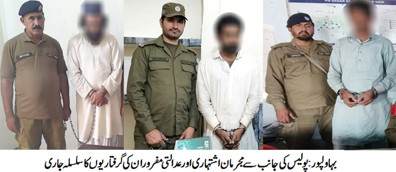 تفصیل کے مطابق آئی جی پنجاب نے اشتہاری مجرمان اور عادی مجرمان کی گرفتاریوں کے حوالے سے احکامات جاری کیے۔ اسی سلسلے میں ڈی پی او بہاولپور سید محمد عباس نے جدید ٹیکنالوجی کا استعمال کرتے ہوئے بہاولپور پولیس کو اشتہاری مجرمان کی گرفتاریوں کا ٹاسک دیا ۔ماہ اپریل 2023میں بہاولپور پولیس نے سمارٹ پولیسنگ اور جدید ٹیکنالوجی کو بروئے کار لاتے ہوئے مجرمان اشتہاری اور عدالتی مفروران کو گرفتار کرنے کیلئے اسپیشل ٹیمیں تشکیل دیں۔ اشتہاری مجرمان کے خلاف کارروائیاں کرتے ہوئے بہاولپور پولیس نے اے کیٹگری کے 23اشتہاری مجرمان اور بی کیٹگری کے 375اشتہاری مجرمان سمیت کل 398مجرمان اشتہاری گرفتار کیے۔ عدالتی مفروران کے خلاف کاروائیاں عمل میں لاتے ہوئے اے کیٹگری کا 1جبکہ بی کیٹگری کے 63عدالتی مفروران سمیت کل 64 گرفتار کر لیے۔اس موقع پر ڈسٹرکٹ پولیس آفیسر سید محمد عباس نے پولیس افسران کو ہدایات جاری کیں کہ روزانہ کی بنیاد پر ایسی کارروائیوں کو مزید تیز کیا جائے، جدید تکنیکی استعارات کا استعمال جرم کو ہونے سے پہلے روک سکتا ہے۔ جرائم پیشہ افراد کی نقل و حرکت کو مانیٹر کیا جا کر انکو انجام تک پہنچایا جائے جس کے وہ مستحق ہیں۔ انہوں نے مزید کہا کہ اشتہاری مجرمان اور عدالتی مفرور اشخاص کی گرفتاریوں سے مقدمات کو جلد از جلد یکسو کیا جا سکتا ہے اور شہریوں کو بروقت انصاف مہیا کیا جا سکتا ہے جس سے عوام کا پولیس پر اعتماد بڑھتا ہے۔