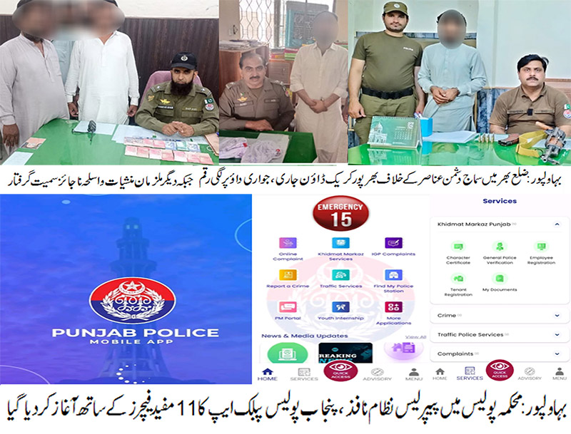 تفصیل کے مطابق آئی جی پنجاب ڈاکٹر عثمان انور کی کاوشوں سے صوبہ بھر کی طرح بہاول پور میں بھی پیپر لیس نظام کو فعال کر دیا گیا۔اس حوالے سے ڈسٹرکٹ پولیس آفیسر سید محمد عباس نے بات کرتے ہوئے کہا کہ پنجاب پولیس پبلک ایپ میں عوام الناس کی سہولت کے لئے 11 مفید فیچرز شامل کئے گئے ہیں۔ عوام اس پولیس ایپ کے ذریعے شکایات/جرم، خدمت مرکز کی سہولیات ، آئی جی پی کی شکایات، خواتین کو ہراساں کرنا، ٹریفک سروس، میرا پولیس سٹیشن تلاش کریں، میری درخواستیں، یوتھ انٹرنشپ، میرا پیارا، دہشت گردی یا نفرت کی اطلاع اور لوگوں کا تحفظ جیسی سہولتیں حاصل کرسکتے ہیں ۔ پولیس ایپ کا "میرا پیارا" فیچر تلاش گمشدہ اور تلاش ورثا میں معاون ہوگا۔ پنجاب پولیس پبلک ایپ میں ویمن ہراسمنٹ فیچر کے ذریعے ہراساں کئے جانے پر ملزم کو فوری ٹریس یا گرفتار کیا جا سکتا ہے ، اس کے علاوہ خدمت مرکز کی 18 سروسز پنجاب پولیس پبلک ایپ میں شامل ہیں۔ انہوں نے مزید کہا کہ عوام الناس اور پولیس کے درمیان فاصلے کم ہو رہے ہیں اور عوام کا پولیس پر اعتماد بڑھ رہا ہے۔ ہماری کوشش ہیکہ شہریوں کے تمام مسائل فوری اور انصاف کے مطابق حل ہوں۔