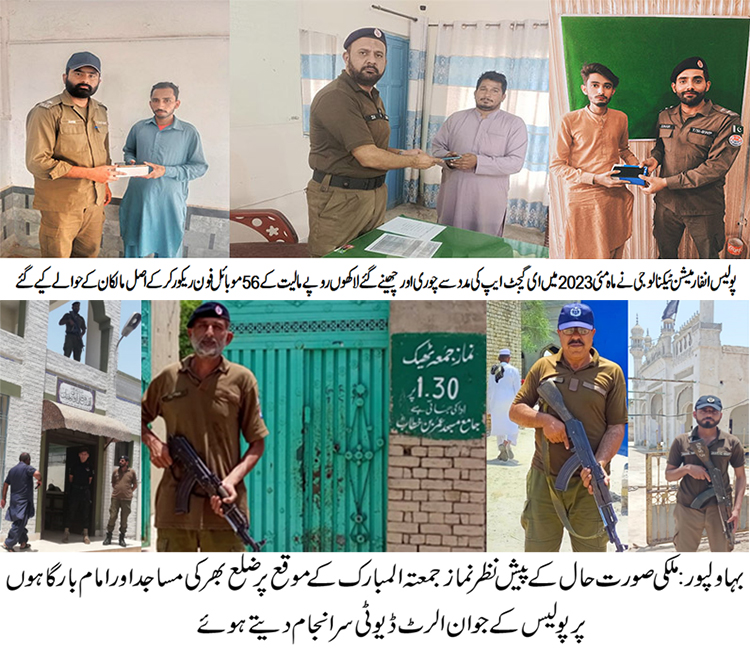 تفصیل کے مطابق ڈی پی او بہاولپور سید محمد عباس نے جدید آئی ٹی سہولیات کو استعمال کرتے ہوئے ماڈرن پولیسنگ کے نظریہ کو فروغ دینے بارے ہدایات جاری کیں۔ڈی پی او بہاولپور سید محمد عباس کی کمانڈ میں جرائم پیشہ افراد کی سرکوبی کا سلسلہ جاری ہے۔ماہ مئی 2023 میں بہاولپور پولیس نے ای گیجٹ کی مدد سے لاکھوں روپے مالیت کے 56 موبائل فون ریکور کرکے اصل مالکان کے حوالے کیے۔پنجاب پولیس کے E۔گیجٹ ایپ کا استعمال مؤثر ثابت ہو رہا ہے۔ موبائل فون چوری یا چھین لیا جائے تو اس کو اب آسانی سے ریکور کیا جاسکتا ہے۔پنجاب پولیس نے ای گیجٹ نام کی موبائل ایپ متعارف کرائی ہے جسے آسانی سے پلے سٹور سے ڈاؤن لوڈ کیا جا سکتا ہے، جس کے بعد کوئی بھی دکاندار اس کی مدد سے باآسانی جان سکے گا کہ اس کے پاس موجود موبائل فون جو کہ فروخت کرنے کیلئے آیا ہے کسی واردات میں ملوث یا چوری کا تو نہیں ہے جس بابت خدشہ ہونے یا علم ہونے کی صورت میں فوری متعلقہ پولیس کو اطلاع دی جاتی ہے دور حاضر میں پولیس کی جانب سے جدید ٹیکنالوجی کے استعمال سے کئی وارداتیں ٹریس کی جا رہی ہیں جس سے معاشرے میں پولیس کے وقار کو مزید بلند ہو رہا ہے۔