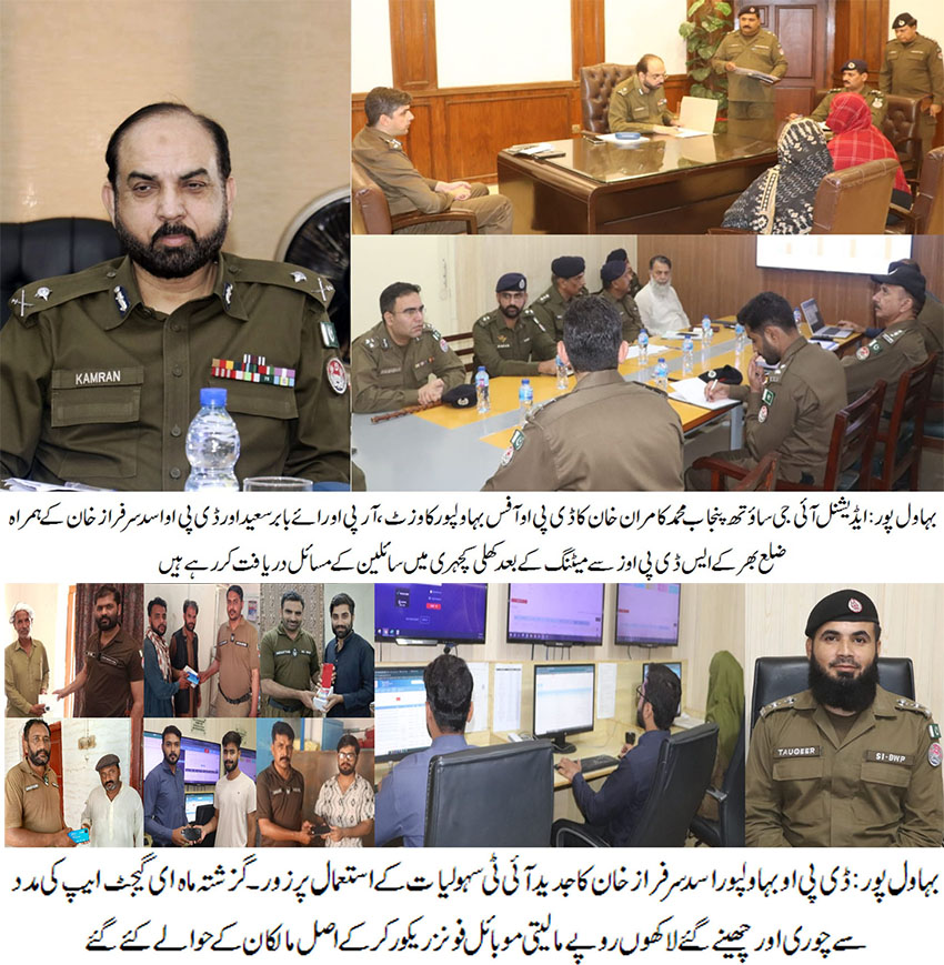 تفصیلات کے مطابق ڈی پی او بہاولپور اسد سرفراز خان نے جدید آئی ٹی سہولیات کو استعمال کرتے ہوئے ماڈرن پولیسنگ کے نظریہ کو فروغ دینے بارے ہدایات جاری کیں۔ڈی پی او بہاولپور اسد سرفراز خان کی کمانڈ میں جرائم پیشہ افراد کی سرکوبی کا سلسلہ جاری ہے ۔گزشتہ ماہ بہاولپور پولیس نے ای گیجٹ کی مدد سے لاکھوں روپے مالیت کے چوری شدہ 177موبائل فون ریکور کرکے اصل مالکان کے حوالے کیے ۔پنجاب پولیس کے لیے ای ۔گیجٹ ایپ کا استعمال موثر ثابت ہو رہا ہے ۔ موبائل فون چوری یا چھین لیا جائے تو اس کو اب آسانی سے ریکور کیا جاسکتا ہے۔پنجاب پولیس نے ای گیجٹ نام کی موبائل ایپ متعارف کرائی ہے جسے آسانی سے پلے سٹور سے ڈان لوڈ کیا جا سکتا ہے، جس کے بعد کوئی بھی دکاندار اس کی مدد سے باآسانی جان سکے گا کہ اس کے پاس موجود موبائل فون جو کہ فروخت کرنے کیلئے آیا ہے کسی واردات میں ملوث یا چوری کا تو نہیں ہے جس بابت خدشہ ہونے یا علم ہونے کی صورت میں فوری متعلقہ پولیس کو اطلاع دی جاتی ہے دور حاضر میں پولیس کی جانب سے جدید ٹیکنالوجی کے استعمال سے کئی وارداتیں ٹریس کی جا رہی ہیں جس سے معاشرے میں پولیس کا وقار مزید بلند ہو رہا ہے۔