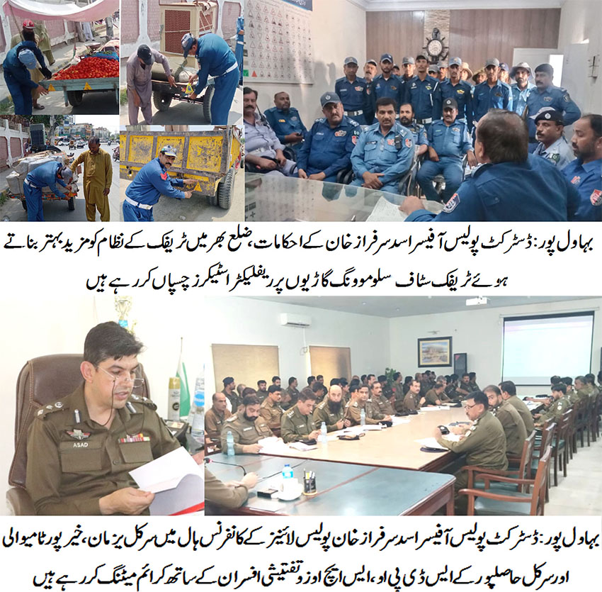 بہاول پور( )ڈسٹرکٹ پولیس آفیسر اسد سرفرازخان کے احکامات، ضلع بھر میں ٹریفک کے نظام کو مزید بہتر بناتے ہوئے ٹریفک سٹاف نے سلو موونگ گاڑیوں پر ریفلیکٹر اسٹیکرزچسپاں کیے۔ شاہراہوں پر ٹریفک کی روانی اور حادثات سے بچاو ہماری اولین ترجیحات میں شامل ہے، ڈسٹرکٹ پولیس آفیسراسد سرفرازخان