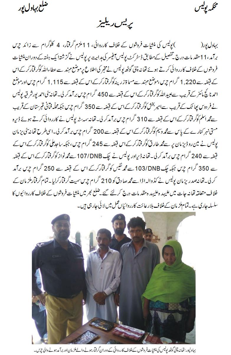 پولیس پولیسک منشیات فروشوں کے خلاف کاروائی، 11 ملزمان گرفتار، 4 کلوگرام سے زائد چرس برآمد، 11 مقدمات درج
