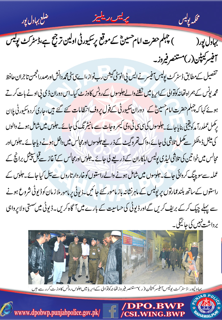 × چہلم حضرت امام حسین ؓ کے موقع پر سکیورٹی اولین ترجیح ھے۔ ڈسٹرکٹ پولی آفیسر کیپٹن (ریٹائرڈ ) مستنصر فیروز ۔