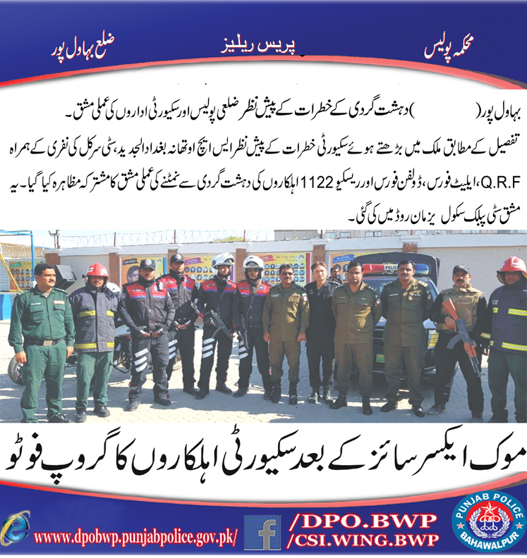 دہشت گردی کے خطرات کے پیش نظر ضلعی پولیس اور سکیورٹی اداروں کی عملی مشق۔