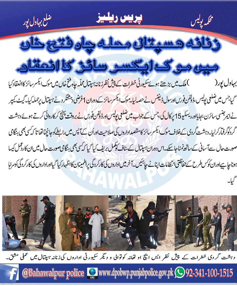 زنانہ ھسپتال محلہ چاہ فتح خاں میں موک ایکسر سائز کا انعقاد ۔