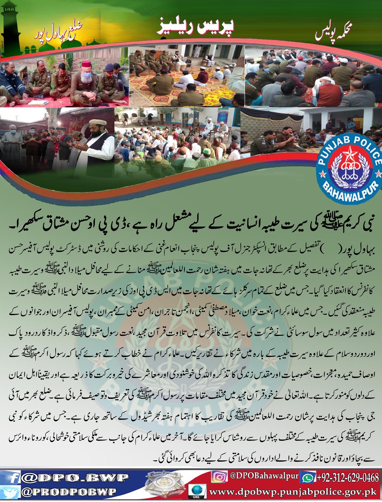 نبی کریم ﷺ کی سیرت طیبہ انسانیت کے لیے مشعل راہ ہے ، ڈی پی او حسن مشتاق سکھیرا۔