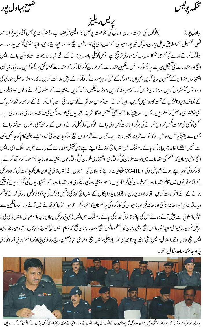 Crime meeting Yazman , Khairpur Tamewali Circle