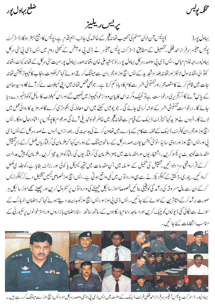 Press Releases Meeting about front desk & Saddar circle Bahawalpur