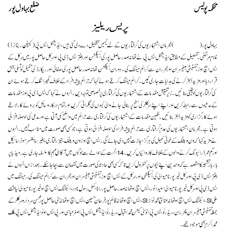 مجرمان اشتہاریوں کی گرفتاریوں کے لیے ٹیمیں تشکیل دے دی گِئی ہیں ایڈیشنل ایس پی (کیپٹن ریٹائرڈ ) غلام مرتضیٰ