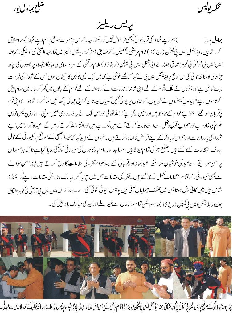 ہم اپنے شہداء کی قربانی کو کبھی فراموش نہیں کرسکتے عید کے پر مسرت موقع پر ہم شہدائے پولیس کو سلام پیش کرتے ہیں ایڈیشنل ایس پی (کیپٹن ریٹائرڈ )غلام مرتضیٰ