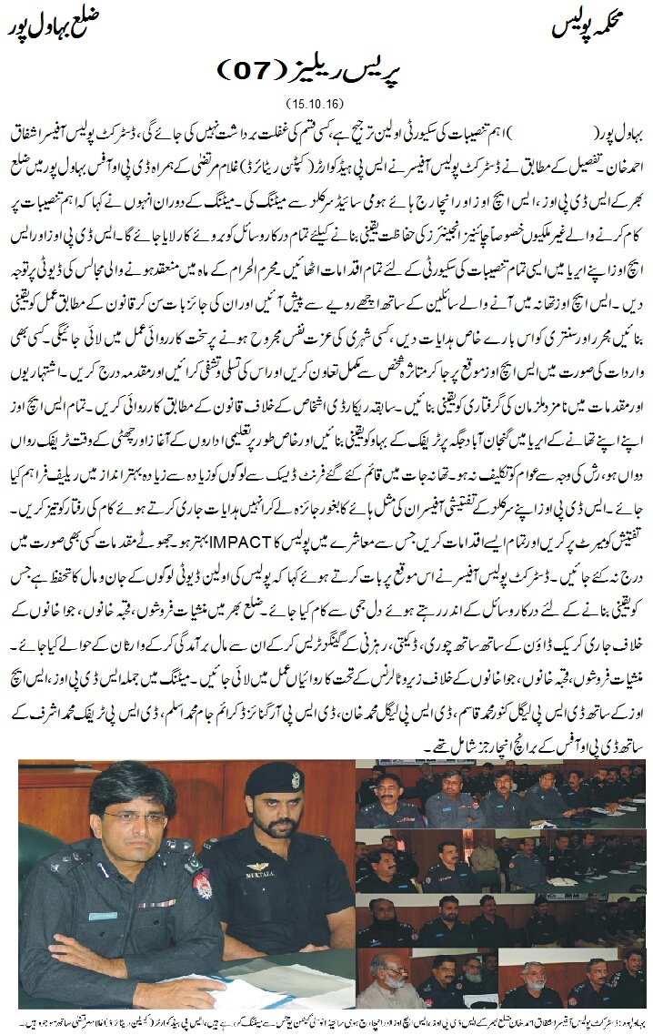اہم تنصیبات کی سکیورٹی اولین ترجیح ہے کسی قسم کی غفلت برداشت نہیں کی جائے گی ڈسٹرکٹ پولیس آفیسر اشفاق احمد خان