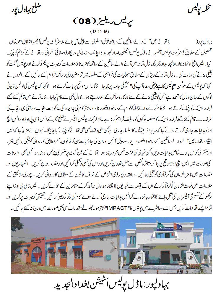 تھانہ میں آنے والے سائلین کے ساتھ خوش اسلوبی سے پیش آیا جائے ڈسٹرکٹ پولیس آفیسر بہاولپور ۔ اشفاق احمد خان