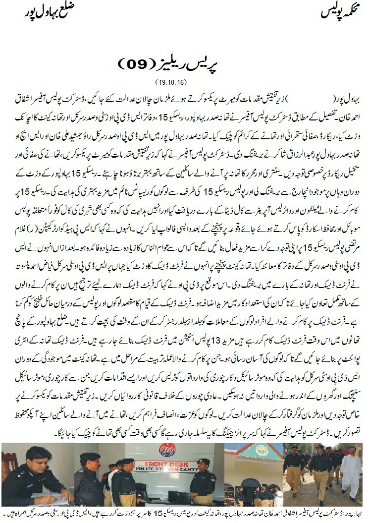 زیر تفتیش مقدمات کومیرٹ پریکسو کرتے ہوئے ملزمان چلان عدالت کیے جائیں ۔ڈسٹرکٹ پولیس آفیسر اشفاق احمد خان