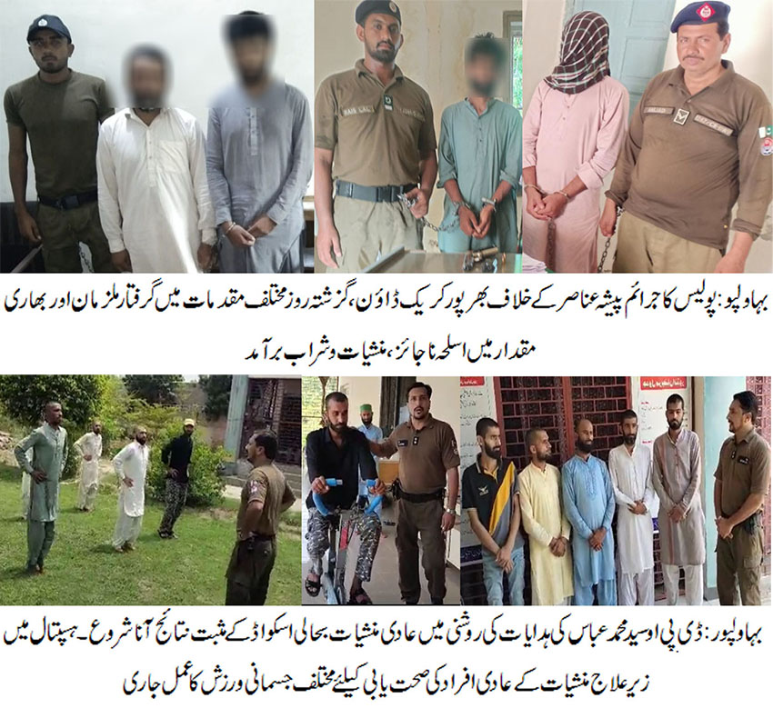 بہاولپور( ) ڈی پی او سید محمد عباس کی ہدایات کی روشنی میں عادی منشیات بحالی اسکواڈ