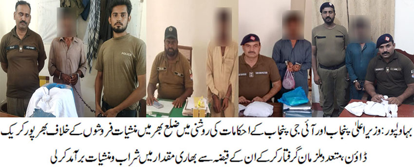 تفصیلات کے مطابق وزیر اعلی پنجاب اور انسپکٹر جنرل آف پولیس پنجاب کی طرف منشیات فروشوں کی سرکوبی کے لئے جاری کردہ احکامات کی روشنی میں ڈسٹرکٹ پولیس آفیسر سید محمد عباس نے ضلع بھر کے ایس ایچ اوز کو سپیشل ٹیمیں تشکیل دے کر منشیات فروشوں کی گرفتاری کا ٹاسک دیا تھا، جس کے نتیجہ میں بہاولپور پولیس کا منشیات فروشوں کے خلاف بھرپور ایکشن جاری ہے۔ گزشتہ 24 گھنٹے میں 21مقدمات درج رجسٹرڈ کئے ۔گرفتار ملزمان کے قبضہ سے 395لیٹر دیسی شراب،80 لیٹر لہن ،01عدد چالو بھٹی، 08کلو 170گرام چرس ،23گرام کرسٹل آئس اور 25گرام ہیروئن برآمد کرلی۔جبکہ گزشتہ 24گھنٹوں میں 05منشیات کے عادی افراد کو برائے علاج معالجہ ہسپتال داخل کروایا گیا۔اس موقع پر ڈی پی او سید محمد عباس نے افسران کو ہدایات جاری کرتے ہوئے کہا کہ منشیات فروشوں کے خلاف خفیہ سٹنگ آپریشن کیا جا رہا ہے۔ منشیات مافیا کے خلاف بلا امتیاز کارروائیاں عمل میں لائی جائیں گی، خاص کر تعلیمی اداروں میں یہ فعل ہر گز برداشت نہیں کیا جائے گا۔ اس مہم میں تمام تر وسائل کو بروئے کار لاتے ہوئے مزید کارروائیاں عمل میں لائی جائیں۔ انہوں نے مزید کہا کہ منشیات ایک لعنت ہے جس کا بہاولپور سے خاتمہ ہر صورت یقینی بنایا جائے گا۔