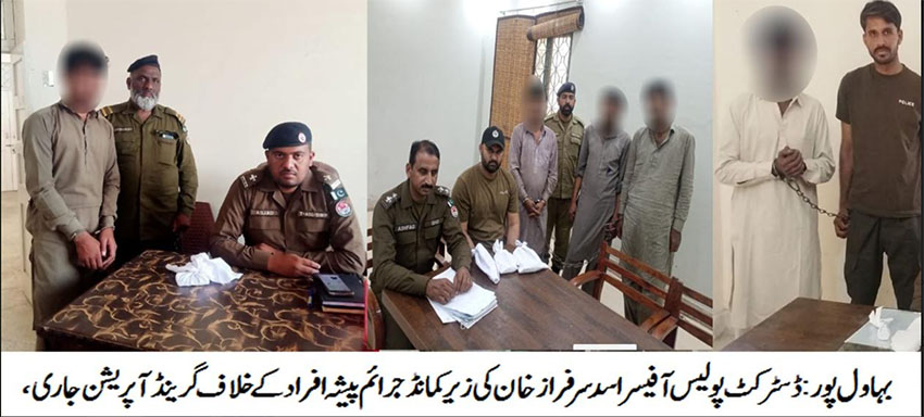 بہاول پور( )ڈسٹرکٹ پولیس آفیسر اسد سرفرازخان کے احکامات ، گذشتہ15روزمیںسماج دشمن عناصر کے خلاف بلا امتیاز کارروائیوں کا سلسلہ جاری ، منشیات فروشوں اوراسلحہ ناجائزرکھنے والوں کے خلاف کارروائیاںکرتے ہوئے 72جبکہ مجرمان اشتہاریوں اور عدالتی مفروران سمیت202ملزمان گرفتارکئے گئے۔منشیات فروشی میں ملوث ملزمان کو جیل کی سلاخوں کے پیچھے پہنچایا جا رہاہے ،بہاول پورکو منشیات سے ہرصورت پاک کیا جائے گا،ایس پی انوسٹی گیشن محمد خالد تبسم