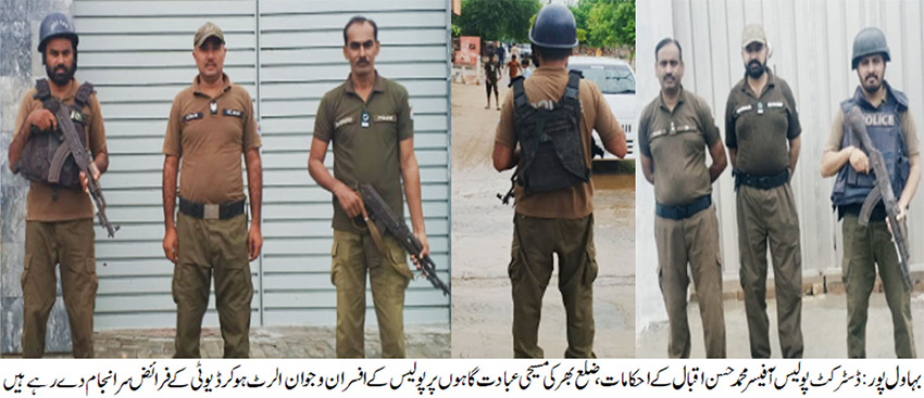 بہاو ل پور( )ڈسٹرکٹ پولیس آفیسر محمد حسن اقبال کے احکامات کی روشنی میں مسیحی عبادت گاہوں کی سکیورٹی کے سخت انتظامات، سینکڑوں پولیس افسران و اہلکار ڈیوٹی پر تعینات، مسیحی برادری سمیت تمام شہریوں کی حفاظت ہمارے اولین فرائض میں شامل ہے، ڈی پی او محمد حسن اقبال