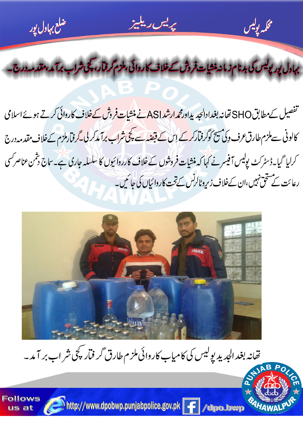 بہاولپور / کرسمس کے موقع پر سینکڑوں لیٹر زہریلی شراب برآمد