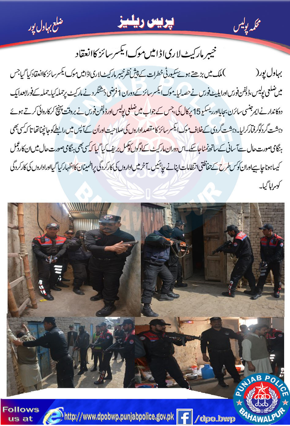 دہشت گردی کے خطرات کے پیش نظر ضلعی پولیس اور سکیورٹی اداروں کی عملی مشق۔