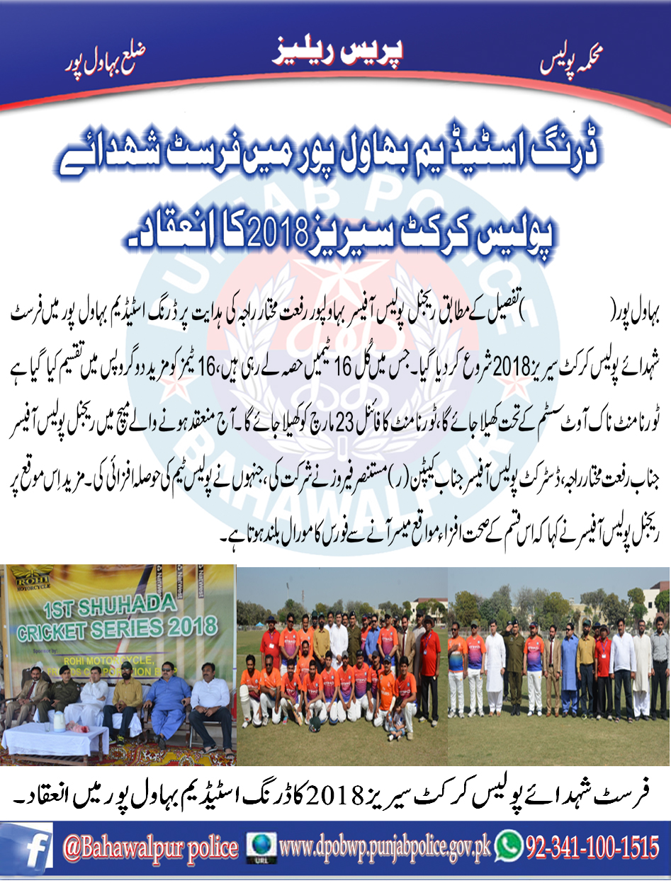ڈرنگ اسٹیڈیم بہاولپور میں فرسٹ شہداۓ پولیس کرکٹ سیریز 2018 کا انعقاد ۔