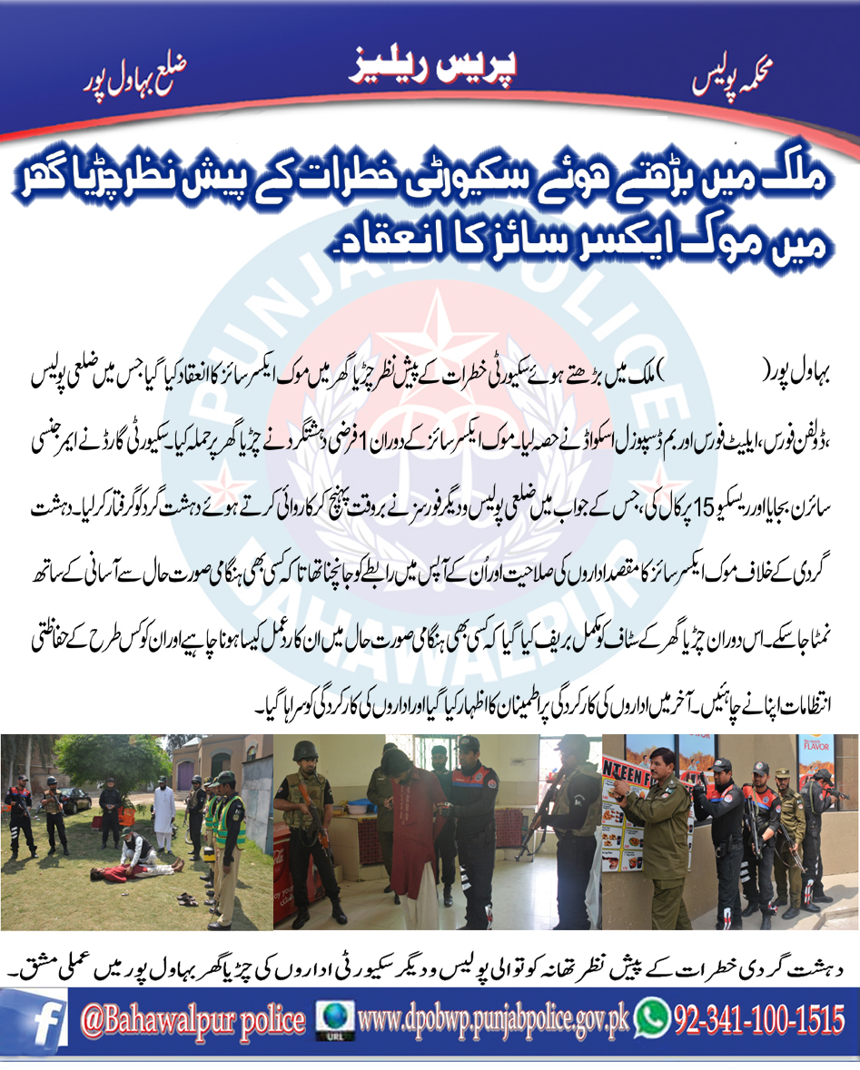ملک میں بڑھتے ہوۓ سکیورٹی خطرات کے پیش نظر چڑیاگھر بہاولپور میں موک ایکسر سائز کا انعقاد ۔.