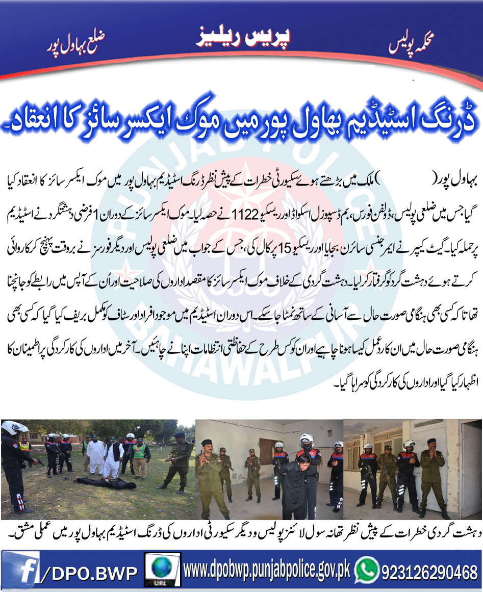 ملک میں بڑھتے ہوۓ سکیورٹی خطرات کے پیش نظر ڈرنگ اسٹیڈیم بہاولپور میں موک ایکسر سائز کا انعقاد ۔.